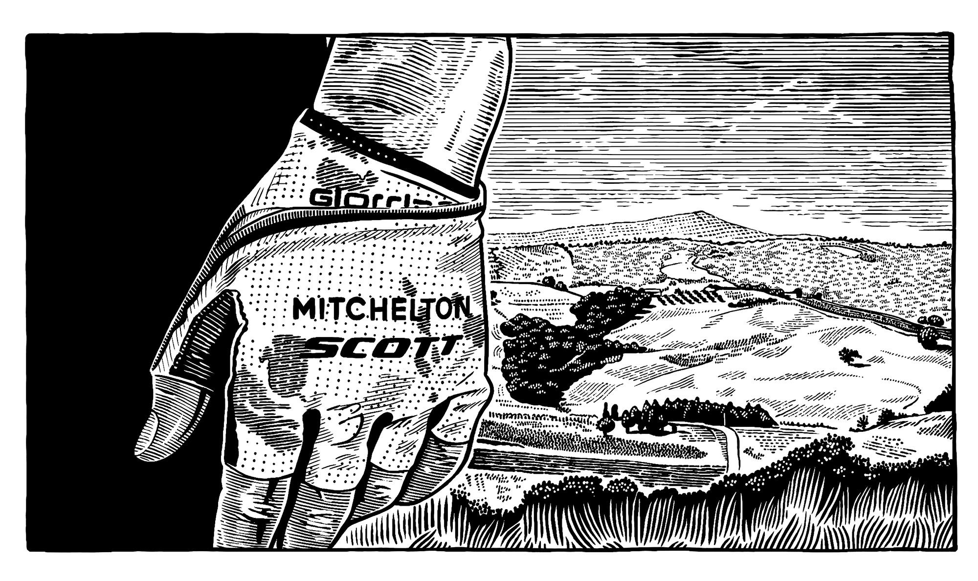 She pushes on, as motorbikes get stuck in rivets, loose stones scatter under her wheels, fans evaporate into a grey haze. Her advantage stretches from 12 to 24 seconds. And then, she’s off. Off her bike. She topples clumsily to her left but manages to free her feet from the pedals. And then she stands up, machine to her side. All at once, she is no longer a part of this perfect mechanical system of cogs and levers. No longer is she the driving force that turns the pedals, that turns the wheels.