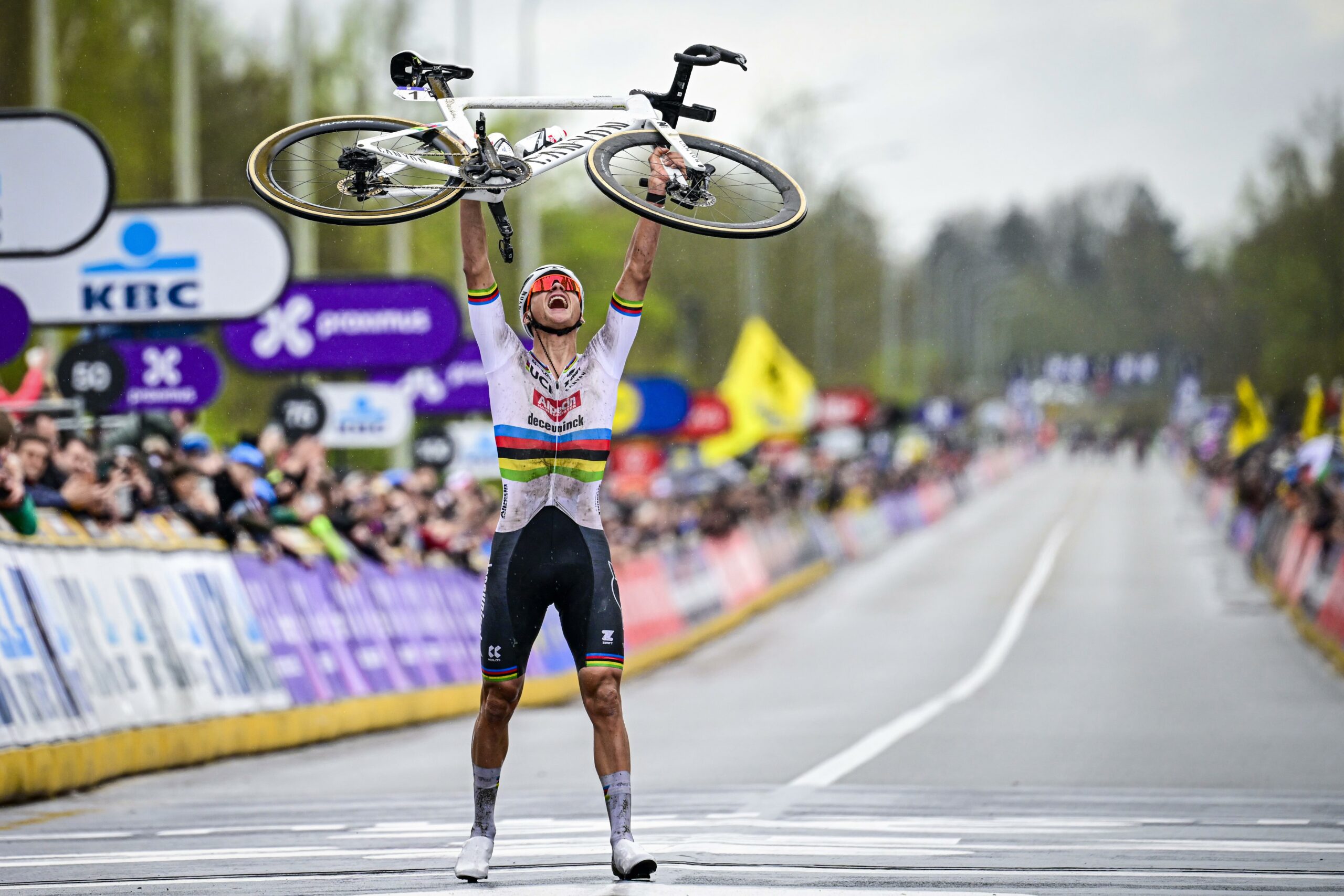 Van der Poel jr. die vanaf de afschuwelijke glijbaan die de Koppenberg heet een monsterachtige solo opzette die, eigenlijk zonder te veel sensatie en strijd leidde tot ’s mans derde zege in de Vlaamse hoogmis, wordt óf doodgeknuffeld óf uitgefloten in Vlaanderen: alles hangt ervan af of de Belg in kwestie een aanhanger van de leer van de heilige Wout van Aert is of niet.