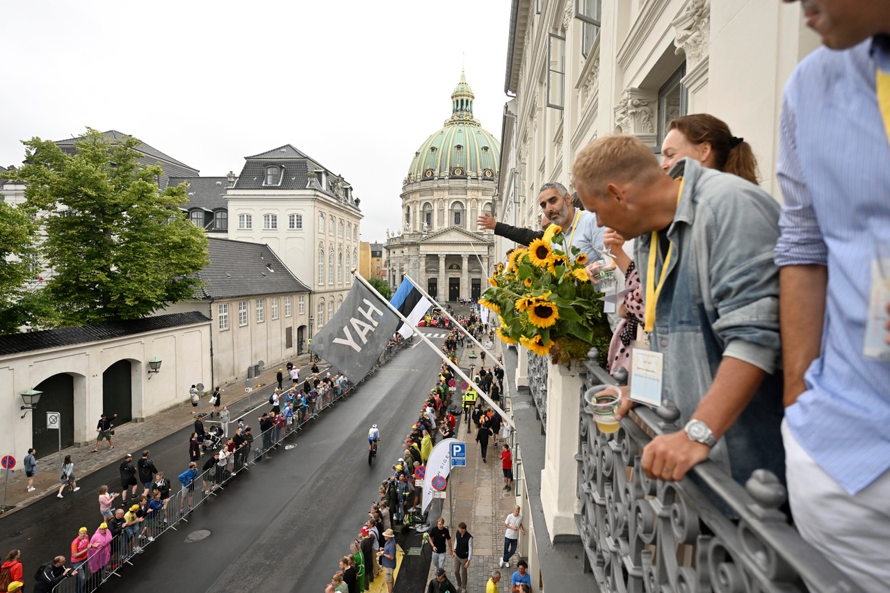 Het kabaal in Kopenhagen riep herinneringen op aan de uitbundigheid waarmee de toeschouwers zeven jaar geleden in Utrecht de renners dovemansoren bezorgden. Toen, de eerste etappe van de Tour van 2015, won Rowan Dennis bij 30 graden en warmer de tijdrit die zo’n 500 meter langer was dan die in Kopenhagen in 14.56, dus 21 seconden sneller dan Lampaert gisteren. Ziedaar de invloed van een bochtig parcours en vooral van een nat wegdek en regenachtig weer.