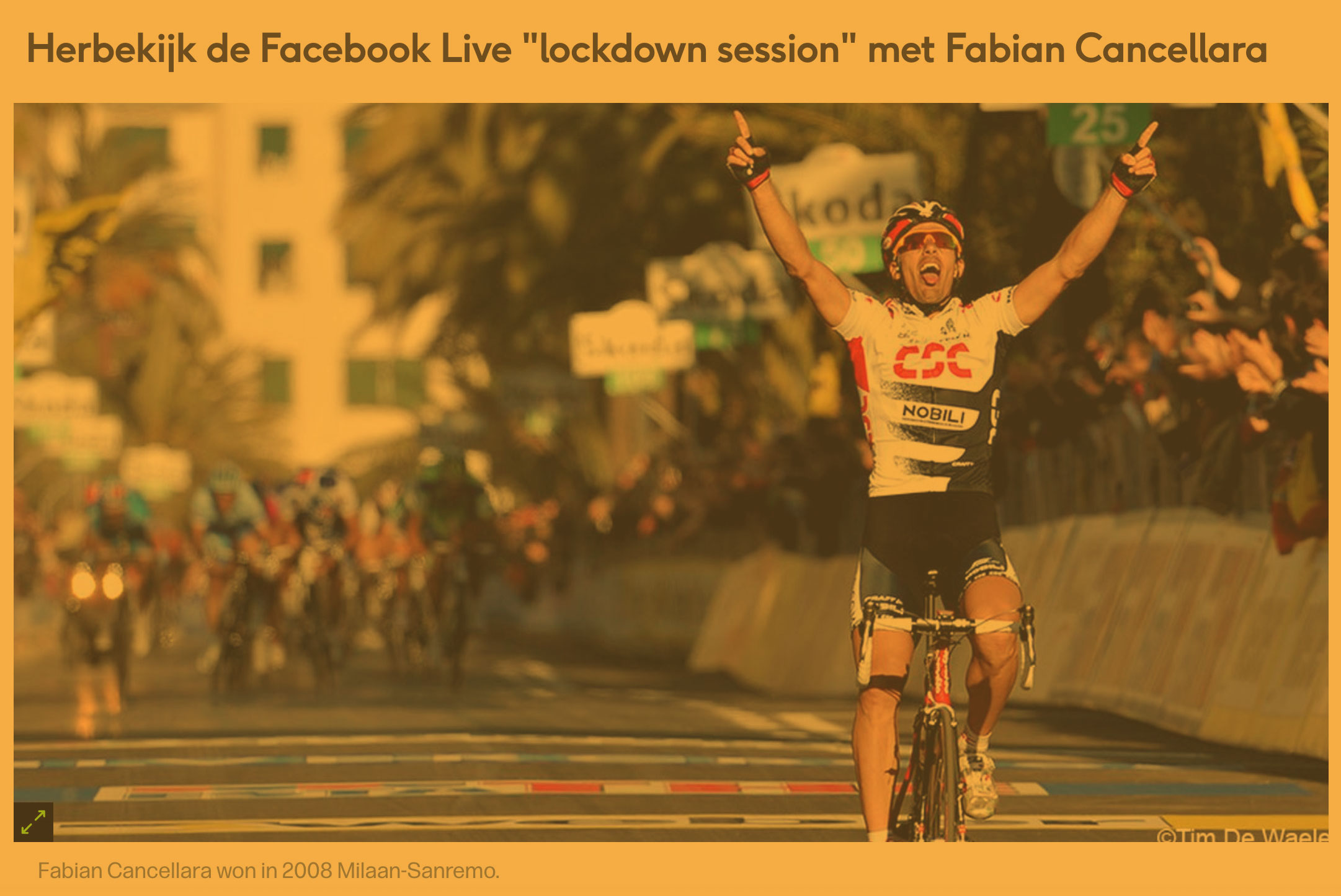 Op zaterdag 29 februari 2020 was het weer koers in de buurt, Jasper Stuyven won de Omloop het Nieuwsblad. Het was geen bijzonder spectaculaire overwinning, maar het commentaar van Michel Wuyts en José de Cauwer bracht iets vertrouwds in de huiskamer terug. Zo was het daags erna ook met Kuurne-Brussel-Kuurne en een knappe solo van Kasper Asgreen. Het besef bestond nog niet dat die eerste traditionele eendagswedstrijden op de buis voorlopig ook de laatste waren, 1 maart 2020.