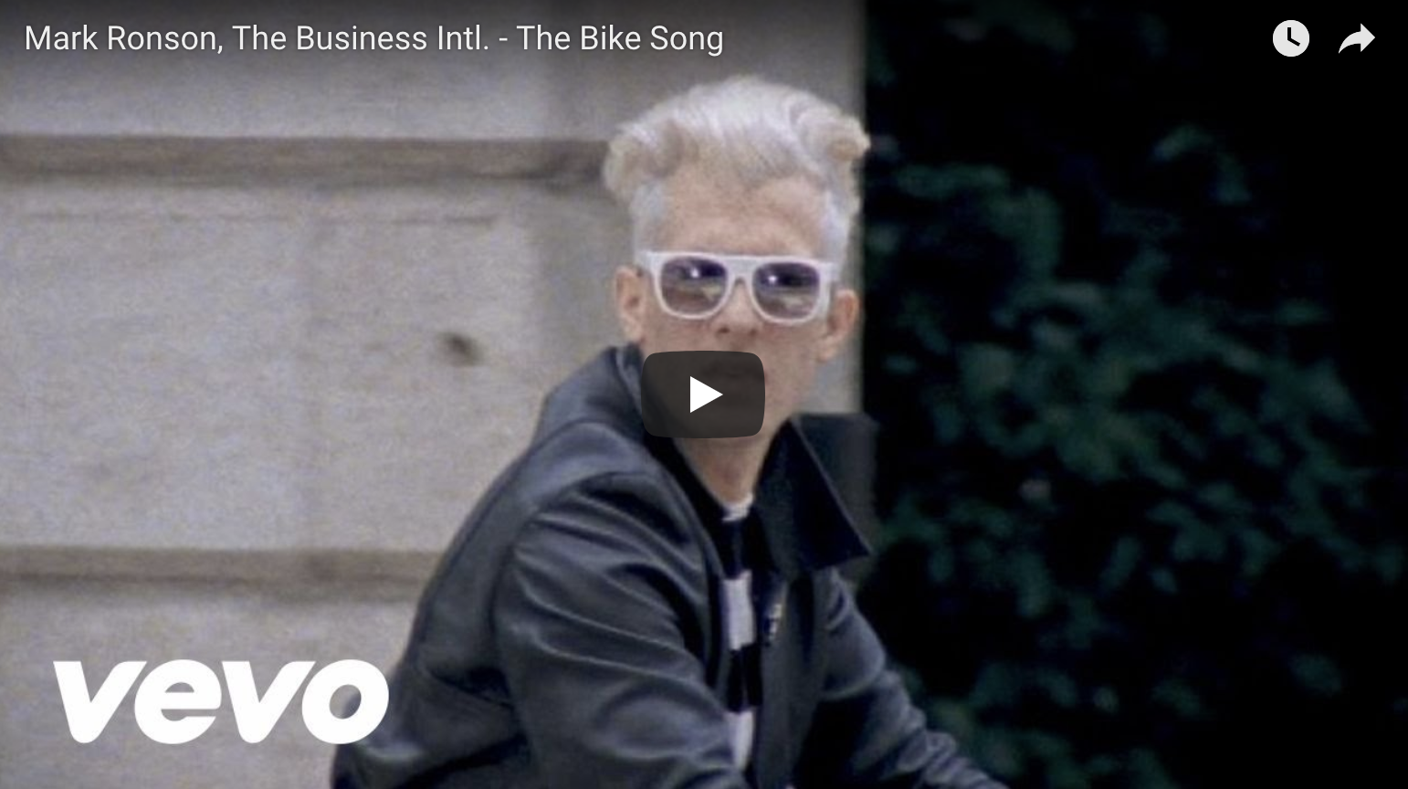 De video toont in het begin een soort Brompton, omgetoverd tot een Kit op twee wielen, maar dan zonder Knight Rider David Hasselhof, maar op het zadel Amy Winehouse-producer en alleskunner Mark Ronson. ‘Refrein: Gonna ride my bike until I get home.’ In de video zorgen alle fietsen ervoor dat een gestolen fiets terugkeert naar de rechtmatige eigenaar. Het liedje is leuker dan de clip.